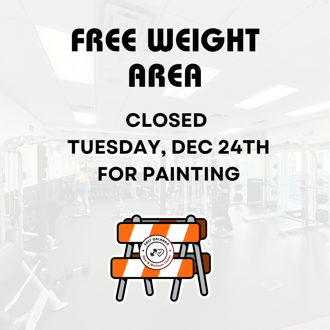 The Free Weight Area will be closed on Tuesday, December 24th for painting.
