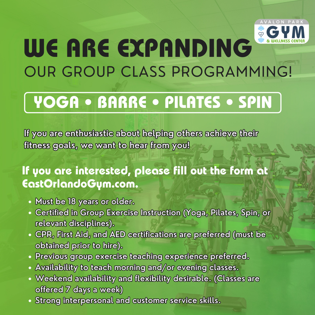 Must be 18 years or older. Certified in Group Exercise Instruction (Yoga, Pilates, Spin, or relevant disciplines). CPR, First Aid, and AED certifications are preferred (must be obtained prior to hire). Previous group exercise teaching experience preferred. Availability to teach morning and/or evening classes. Weekend availability and flexibility desirable. (Classes are offered 7 days a week) Strong interpersonal and customer service skills.